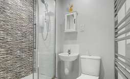 Ensuite Shower Room - Shower cubicle, wash hand basin and wc, splashbacks and radiator.