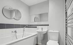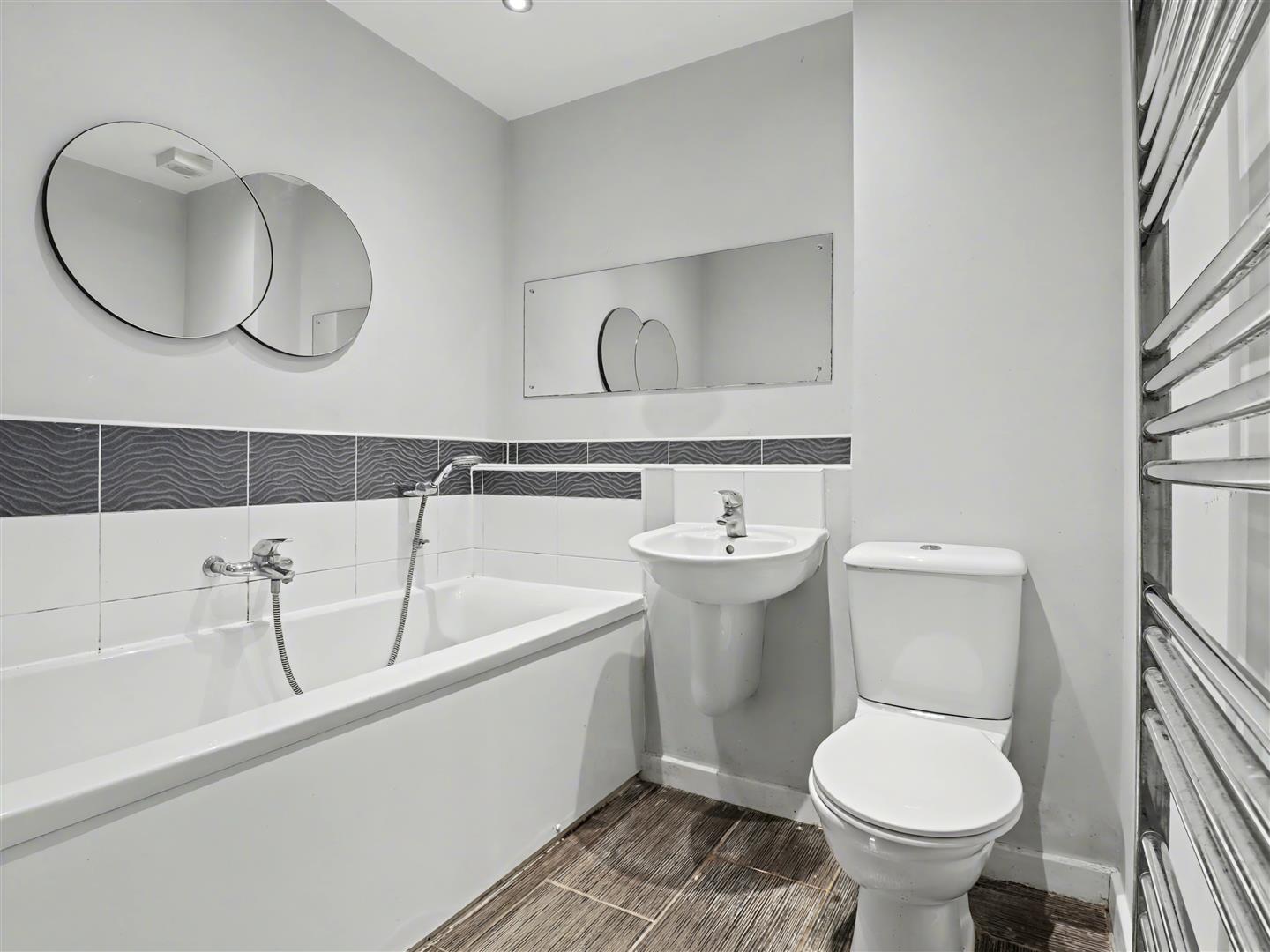Bathroom - Panel bath, wash hand basin and wc. Splash backs and radiator.