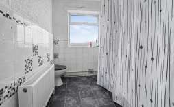 Bathroom - Panel bath with shower, pedistal wash hand basin, wc and half tiled walls. New Lino.