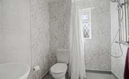 Shower Room - Low level W/C, shower, pedestal wash basin, radiator, double glazed window to side.