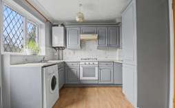 Kitchen/Diner - 3.87 x 3.00 (12'8" x 9'10") - Range of fitted base and wall units with work surfaces over, plumbing and space for washing machine, space for fridge freezer, integrated oven, hob and extractor, wall mounted gas boiler, double glazed window to rear, door to garden, radiator.