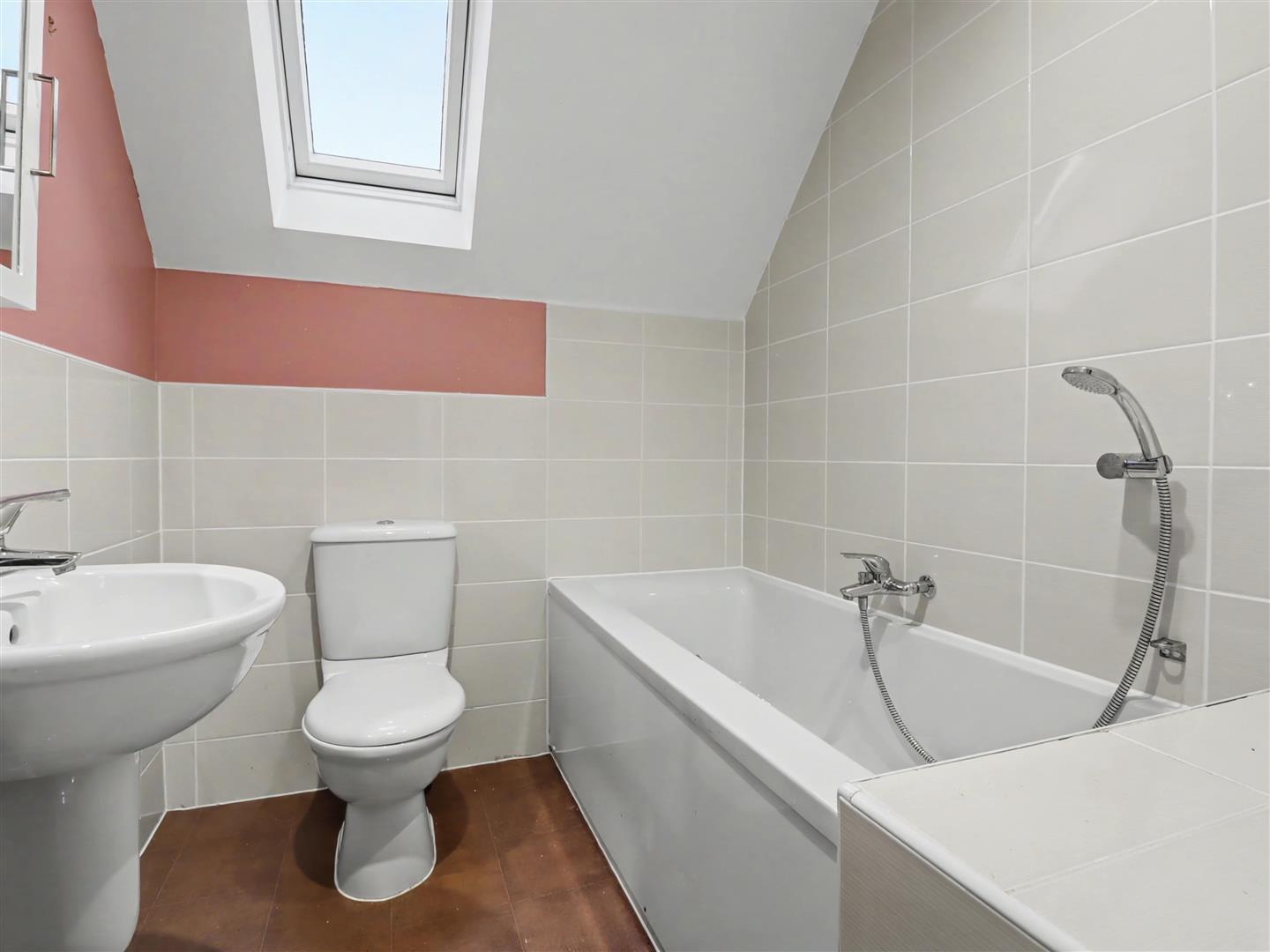 Bathroom - Velux style window to the rear, wc and wash hand basin. Splash backs.