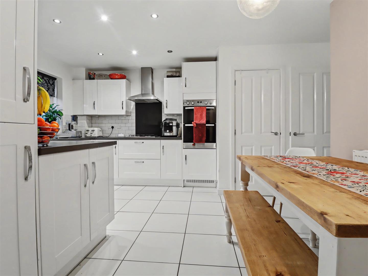 Kitchen/Breakfast Room - 3.96m max x 2.74m min (13'0 max x 9'0 min) - Sealed unit double glazed window to the rear, range of base and wall mounted units with integrated appliances to include hob and extractor fan over with splash back, oven, dishwasher and fridge/freezer.