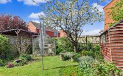 The rear garden is a true highlight, having been lovingly landscaped by the current owner. With sculptured borders that promise seasonal surprises, this garden is a haven for nature lovers. The lawned area provides a serene setting, while an additional seating space at the rear, complete with a fruit tree and a shed, offers a perfect spot for outdoor enjoyment.