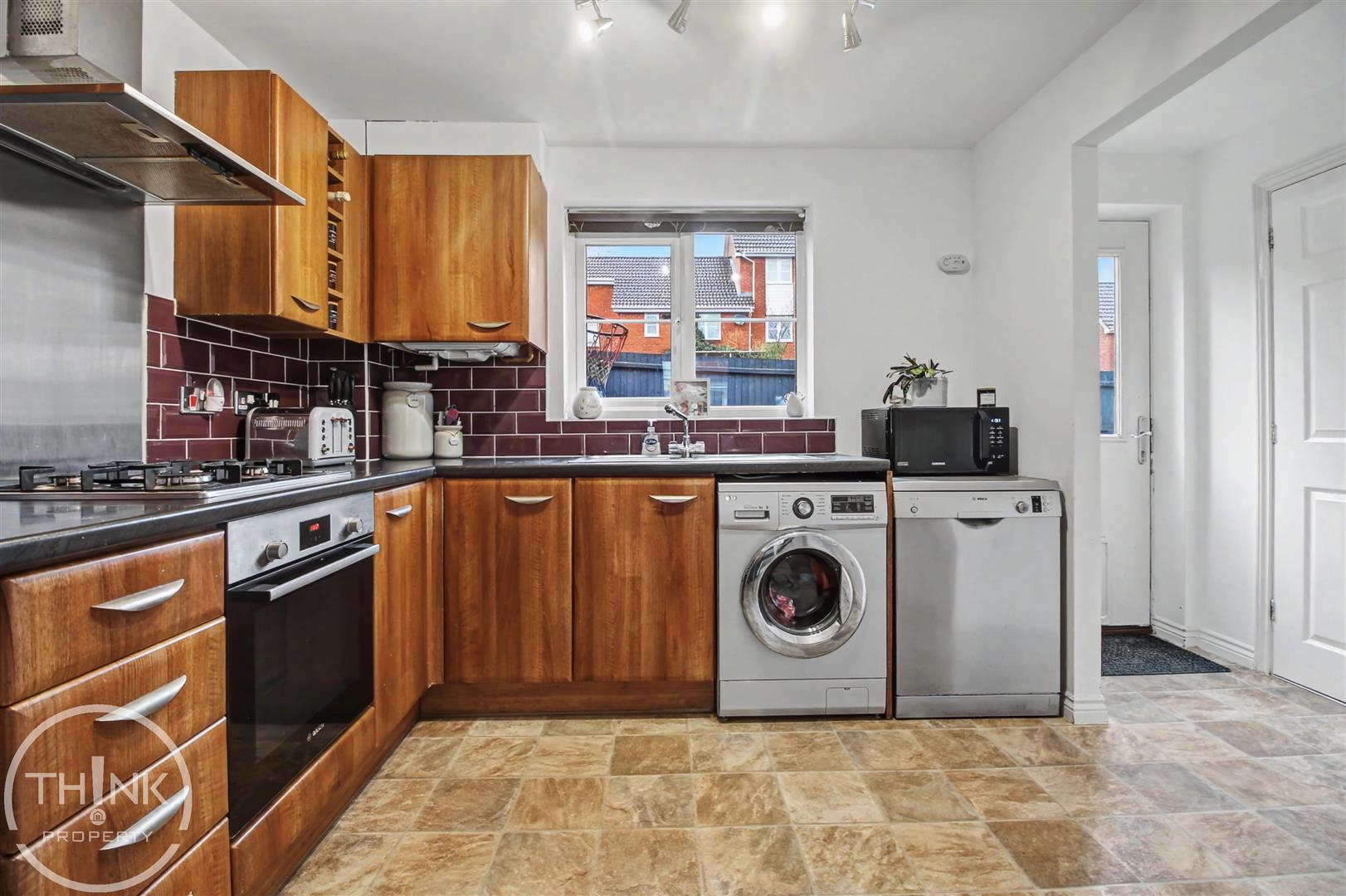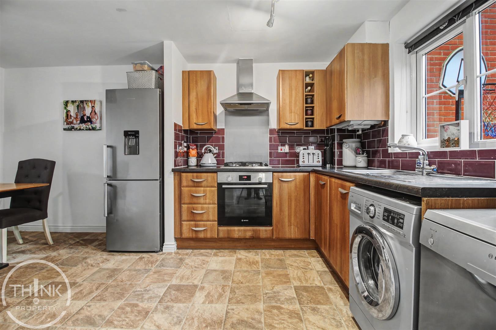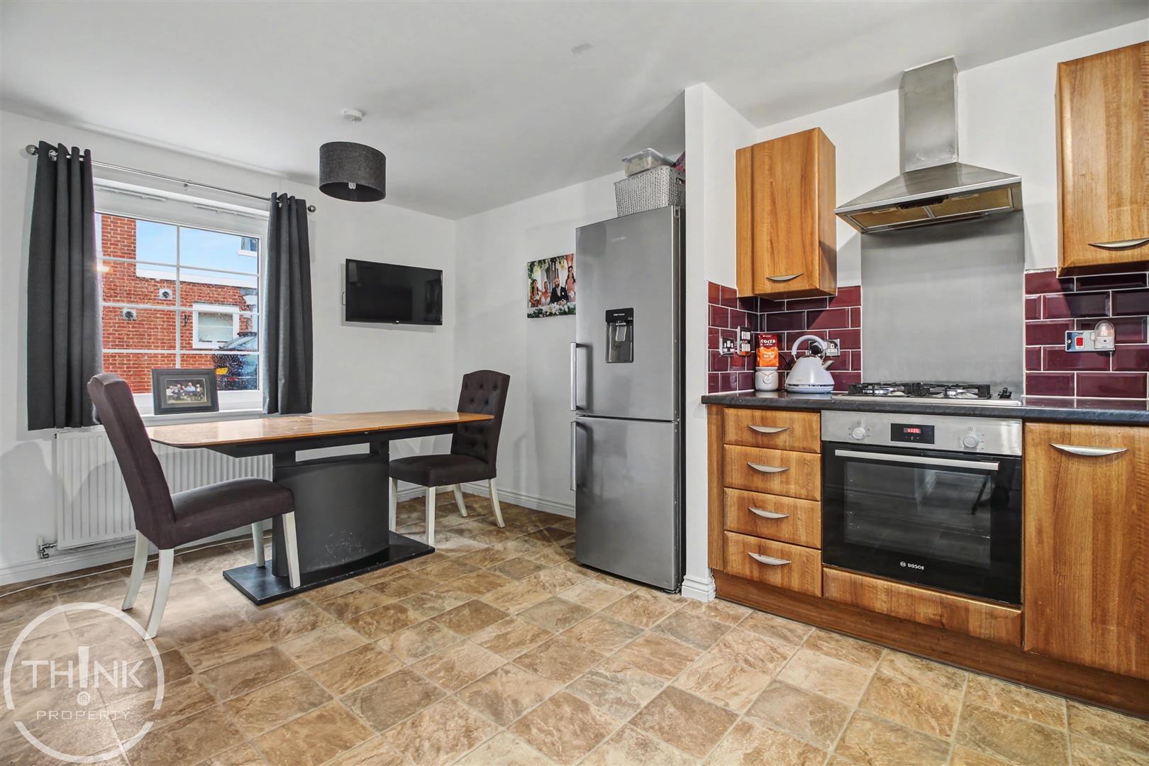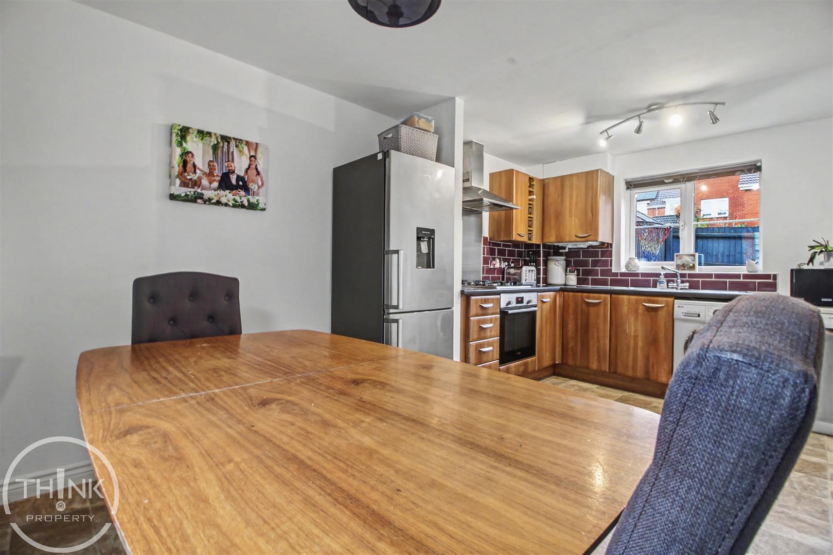 Kitchen/Dining Room - 4.81 x 2.92 (15'9" x 9'6") - Double glazed windows to front and rear, fitted range of wall and base units with work tops over, sink and drainer, fitted oven and hob, space for appliances, radiator, opening to rear lobby.