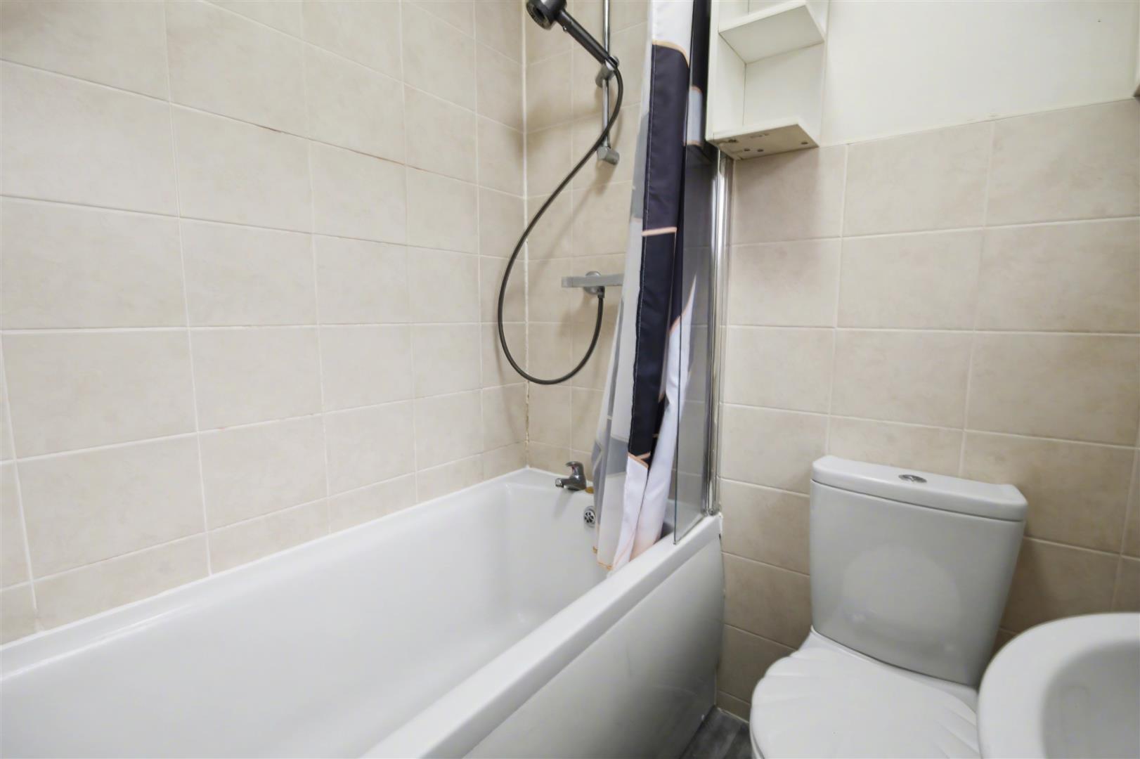 The property also offers off road parking outside the front. The living space offers light and space and is decorated neutrally. The kitchen again has been finished well with neutral cupboards and wood effect worktops with an electric hob, oven and extractor hood. Through the kitchen is a small space which houses the gas combo boiler before you get to the bathroom.