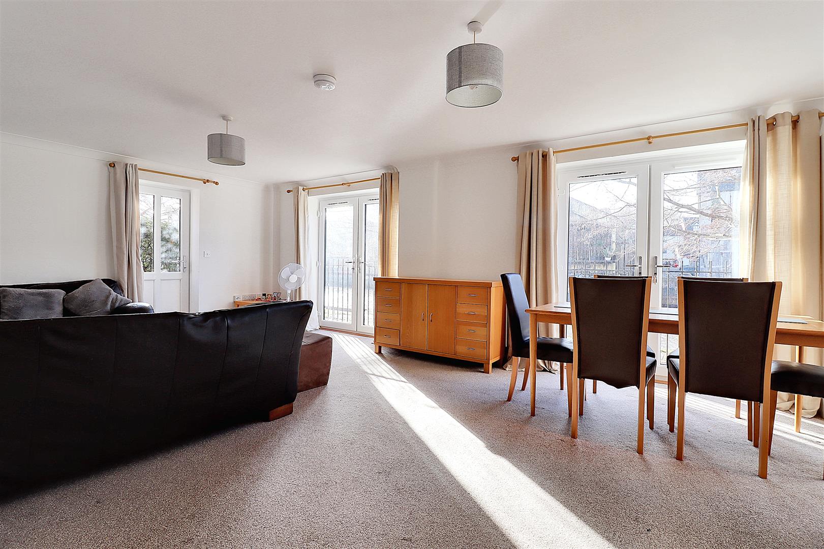 Sitting/Dining Room - 7.04m x 4.19m (23'1 x 13'9) - Spacious and light open plan with doors either side leading out to private courtyard terraces overlooking the river. Two sets of double glazed French doors opening to Juliet balconies also with fabulous views over the river and radiators.