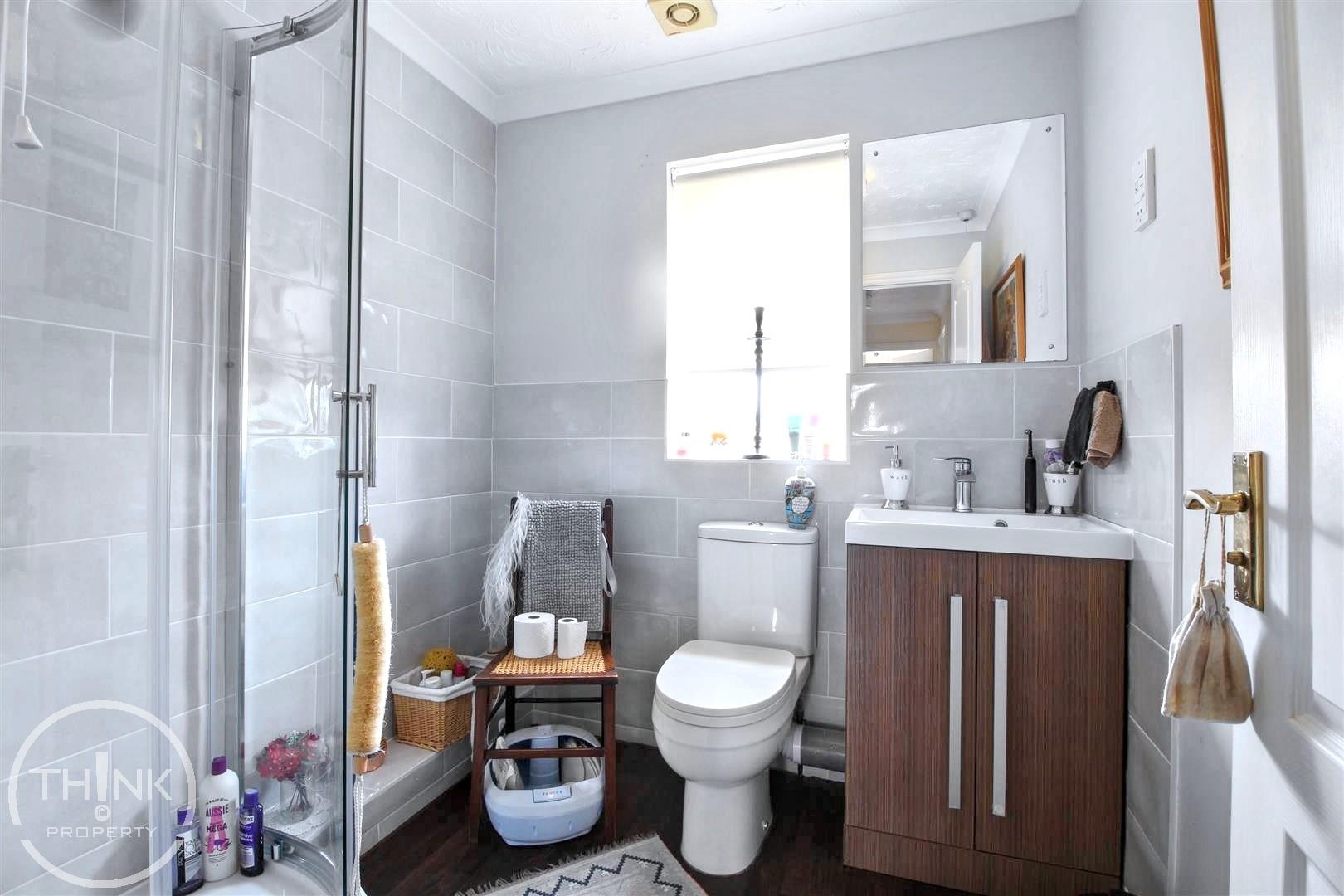 Bathroom - A modern and neatly presented shower room comprising a glazed shower enclosure, sleek wash basin, and low-level WC. Finished with contemporary tiling and clean lines, offering both style and practicality.
