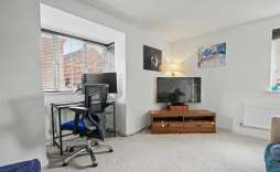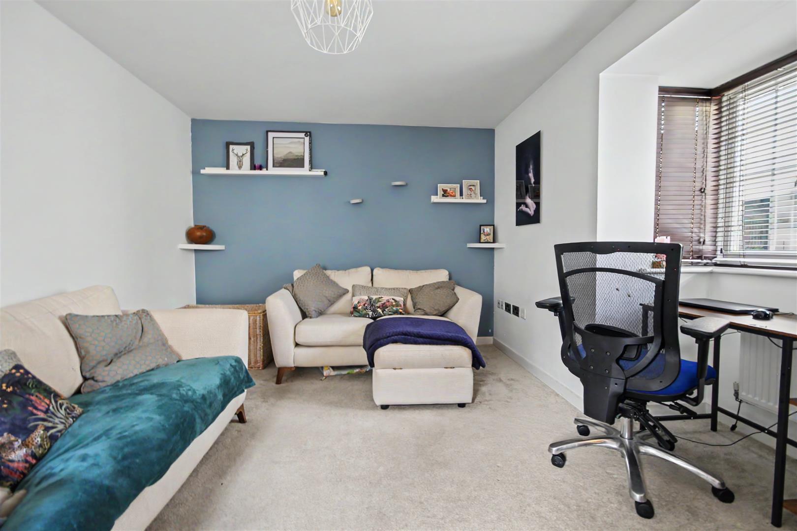 Living Room - 3.05 x 4.83 (10'0" x 15'10") - Carpeted Living room offering warmth and cosy living. Square bay window offering plenty of light with the 3 windows, perfect for a desk for home working. Blue painted feature wall. Lots of natural light in the room.