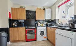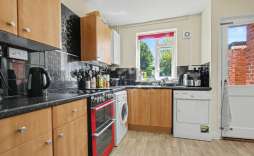 Kitchen - 3.10 x 3.82 (10'2" x 12'6") - Fully fitted kitchen with two fridge freezers, oven and hob , microwave and all necessities. White UPVC door leading to rear garden.