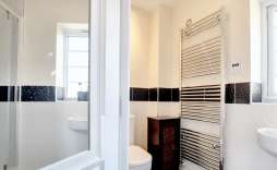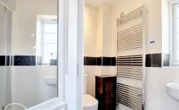 Bathroom/Guest Ensuite - Panel bath with shower over, wc and wash hand basin, splash backs.