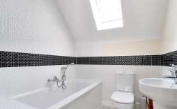 Bathroom - Skylight to the rear, panel bath, wc and wash hand basin. Radiator.