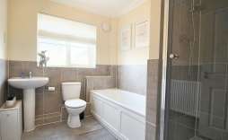 Family Bathroom - LVT flooring, comprising W/C, panelled bath and sink, sperate shower, double glazed window to the rear garden.