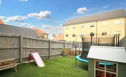 Outside - The rear garden is landscaped throughout containing porcelain grey slate tiles, artificial grass, and features a low picket fence to the rear that sections an entertaining space that benefits from porcelain grey slate tiled and a double socket for power. The garden also has a rear timber gate that allows access to the front of the property and to the detached single garage.