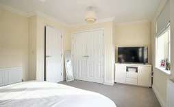 Master Bedroom - Carpeted flooring, radiator, built in wardrobes, two double glazed windows to the front aspect and coving.