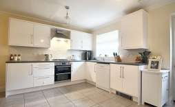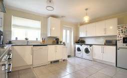 Kitchen - Tiled flooring underfoot, a range of white gloss base and wall units featuring a integrated electric oven and gas hob with extractor fan over and a wall mounted boiler cupboard, tiled splashbacks, space and plumbing for a dishwasher, washing machine and tumble dryer. space for a fridge/freezer, double glazed window and UPVC door to the rear garden.