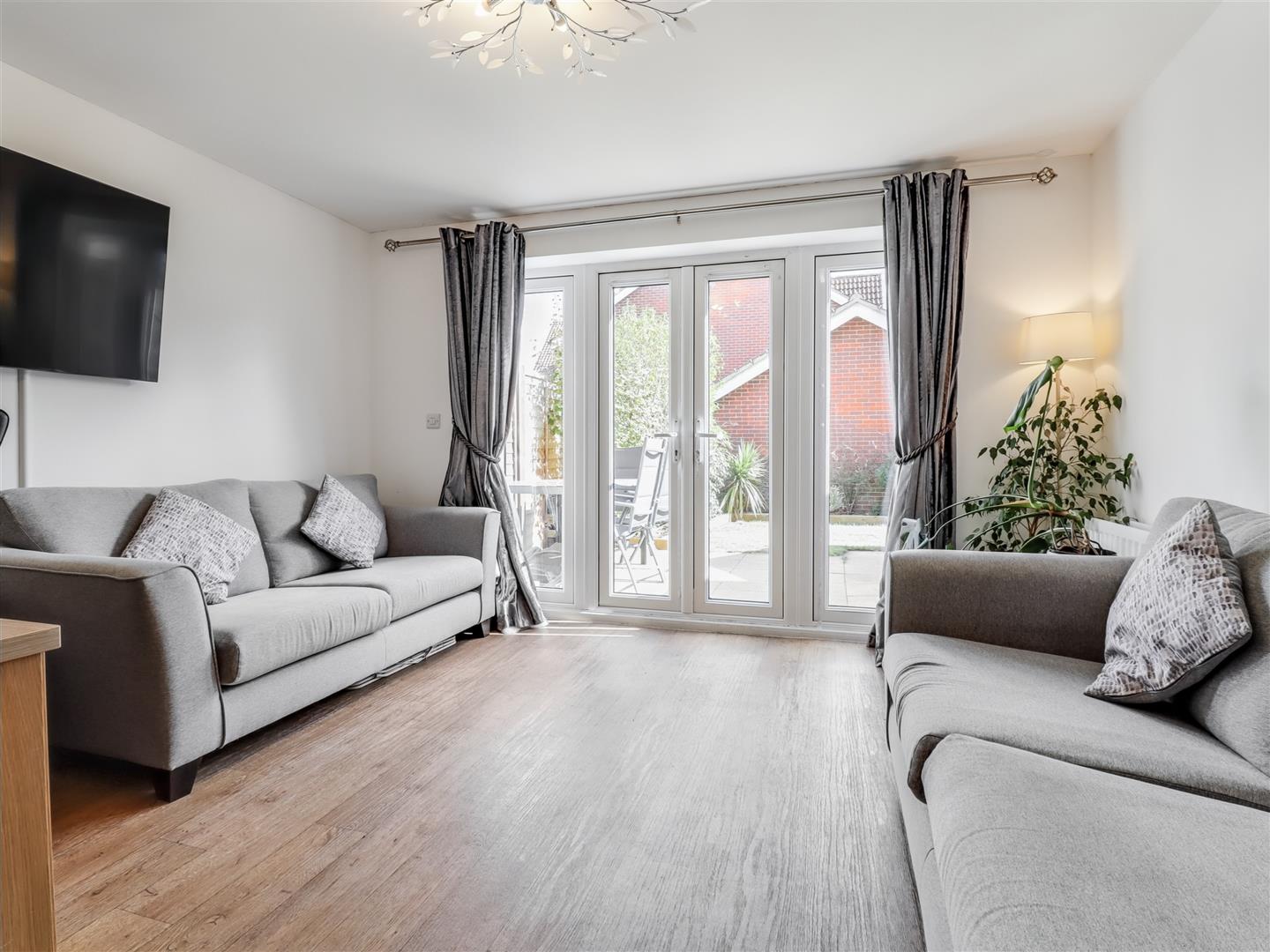 Upon entering, you are greeted by a welcoming entrance hall that leads to a convenient WC. The heart of the home is the spacious kitchen/dining/sitting room, designed to foster family connections and entertaining. Double doors seamlessly open to the rear garden, creating a harmonious flow between indoor and outdoor spaces.