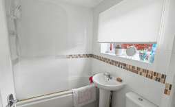 Bathroom - Fitted with a three piece suite, comprising of panelled bath with shower over, low level WC, hand wash basin, radiator, tiled floor and part tiled walls, upvc window to the side aspect and radiator.