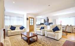 Lounge/Kitchen/Dining Room - 6.49 x 5.72 (21'3" x 18'9") - Part Laminate/Carpet flooring, range of fitted base and wall units with work surfaces over, integrated oven, hob and extractor fan, integrated dishwasher, space for free standing fridge/freezer, built in TV wall unit, spotlights, tiled splash backs, radiator x2, double glazed window to front x2, double glazed window to side, door to hall x2.