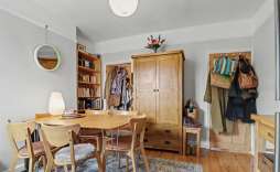 Upon entering, you are greeted by a welcoming comfortable sitting room, perfect for relaxing after a long day. Leading to the inner lobby. The dining room provides an ideal space for entertaining guests, while the galley-style kitchen is both functional and inviting. A conveniently located downstairs bathroom adds to the practicality of this lovely home.