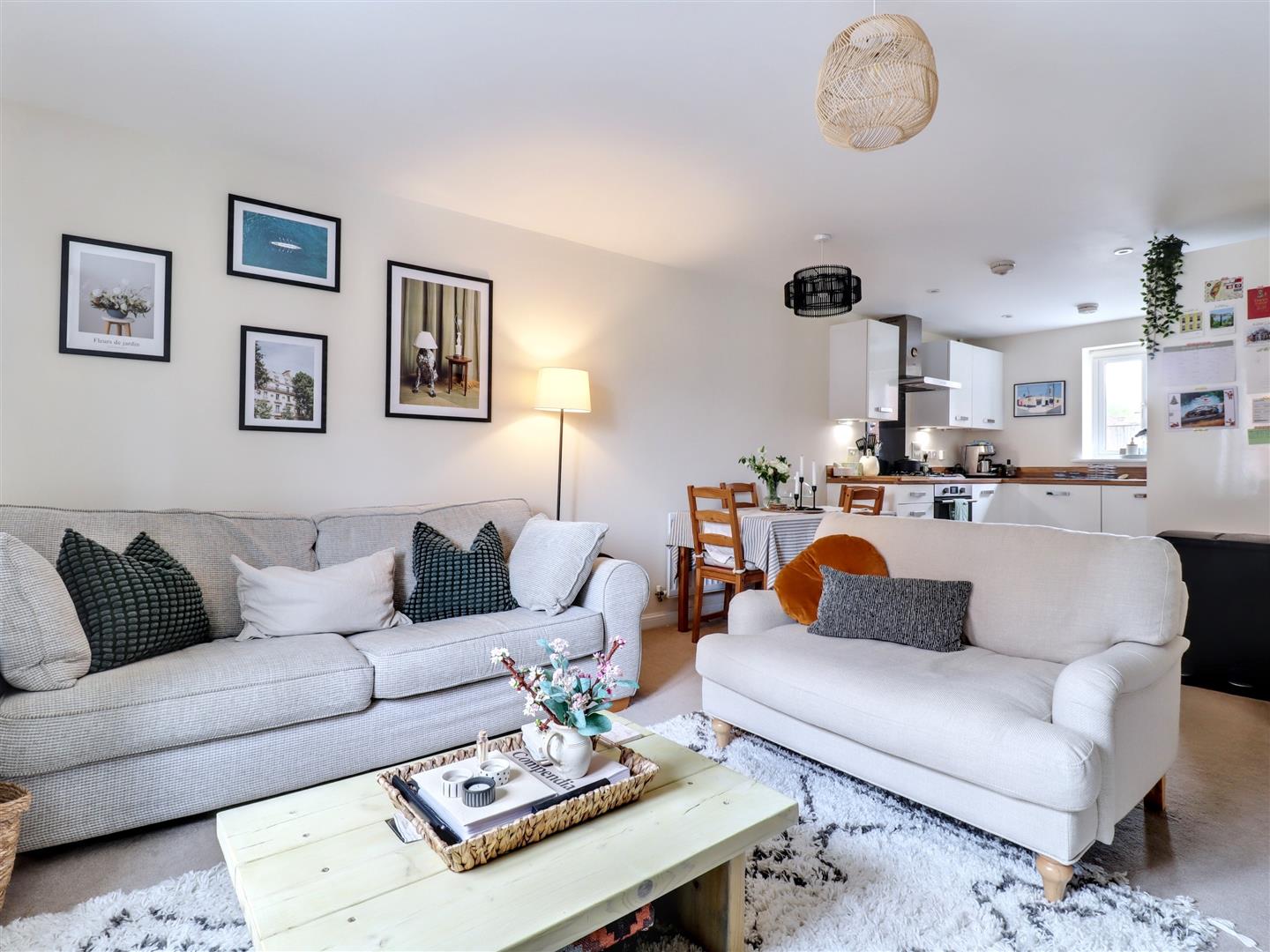 Open Plan Sitting/Dining - 4.42m max x 4.17m max (14'6 max x 13'8 max) - Sealed unit double glazed window to the front, open plan space seamlessly connecting to the kitchen. Radiator.