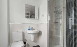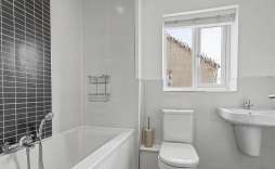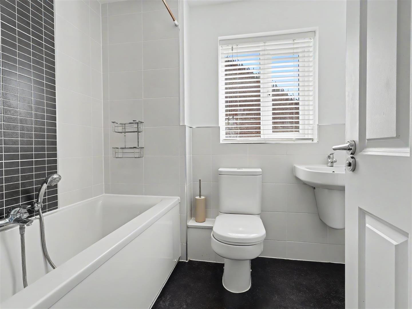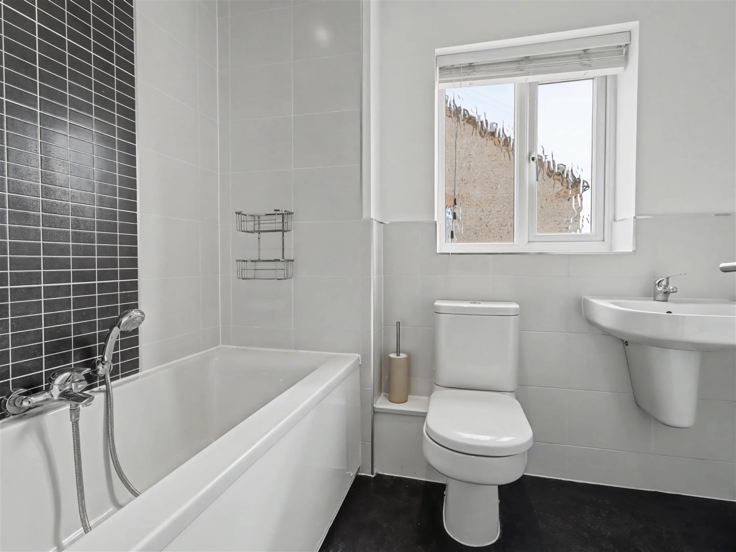 Family Bathroom - Sealed unit double glazed window to the side, panel bath with shower, wc and wash hand basin, splash backs and radiator.