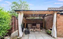 The rear garden is low maintenance with a bespoke Pergola perfect for outside dining. There is access to the side and into the garage.