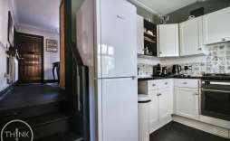 Kitchen - Fitted units with work surfaces, integrated oven/hob/extractor, tiled floor, space for fridge-freezer, double-glazed window to rear, door to rear lobby.