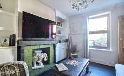 Lounge - Wood flooring, radiator, double glazed window to front, exposed brick fireplace.