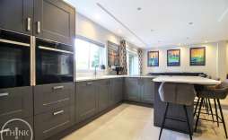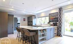 The heart of the home is undoubtedly the impressive Wren design kitchen, equipped with high-quality NEFF appliances, which seamlessly flows into a dining and family area, creating a perfect space for entertaining guests or enjoying family meals. A utility room and cloakroom add to the practicality of this well-thought-out layout.