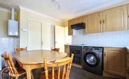 Kitchen/Breakfast Room - 3.58 x 3.37 (11'8" x 11'0") - Range of fitted base and wall units with work surfaces over, plumbing and space for washing machine, integrated oven, hob and hood, tiled splash backs, double glazed window to rear, door to outside, wall mounted gas boiler, airing cupboard, storage cupboard, space for free standing fridge freezer.