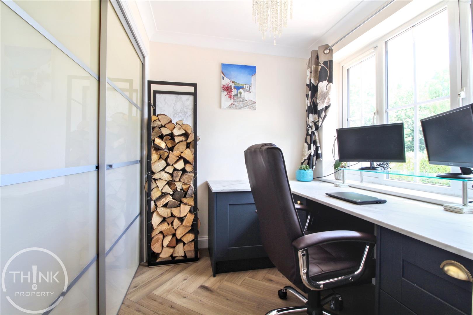 Study - 2.20 x 1.87 (7'2" x 6'1") - Laminate wood flooring, sliding door storage cupboards, fitted office furniture, double glazed window to front.