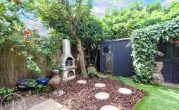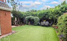 The rear garden is private and enclosed. Mainly laid with artificial grass and a hard standing patio area, large timber framed storage shed, a BBQ area and a range of mature plants, trees and shrubs.