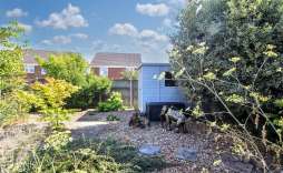 The rear is private and enclosed with a hard standing seating area and a range of mature plants, trees, herbs and shrubs, timber fencing and a timber framed storage shed.