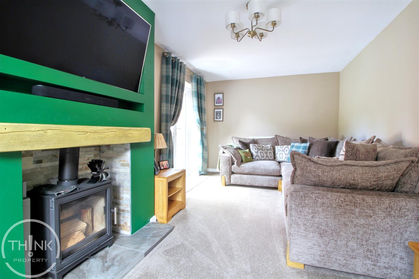 Lounge - 3.02 max x 5.48 (9'10" max x 17'11") - Fitted carpet, doors to garden, double glazed window to front, radiator x2, wood burner with oak mantle.
