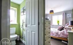 Upstairs, the property features three well-proportioned bedrooms, all accessible from the landing. The master bedroom benefits from an en suite, ensuring privacy and comfort, while a stylish bathroom serves the remaining bedrooms.