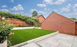 Outside - Recently landscaped garden with hard standing patio, artificial grass and raised flower beds.
