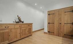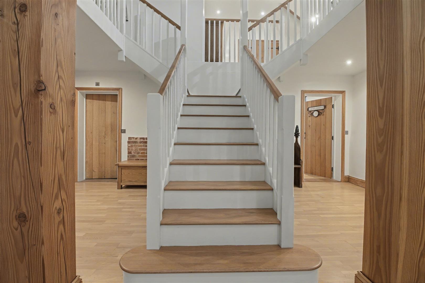 Inner Hall - Handmade ledge-and-brace oak doors with traditional door furniture lead to each of the four bedrooms and the shower room. A sealed unit double-glazed window to the side brings in natural light, while the engineered oak flooring adds both warmth and durability to the space.