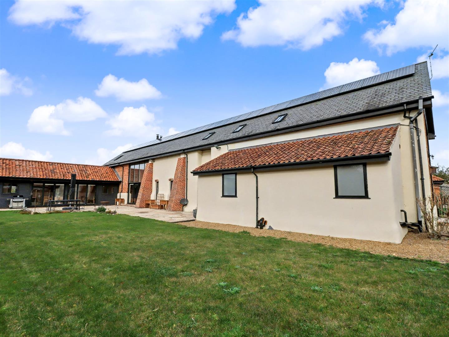 Little Orchard Barn is a stunning six-bedroom barn conversion set within approx. one acre (stms) in the peaceful village of Felthorpe. Blending rustic charm with modern comfort, the property includes a self-contained annexe ideal for guests, multi-generational living or AirBnB, offering excellent versatility for a variety of lifestyles and income potential.