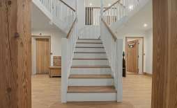 First Floor - A central staircase leads gracefully up to the first floor, where a balcony offers striking views over the mezzanine library/study and the galleried expanse of the drawing room below. Doors open to the principal bedroom, bedroom six, and the bathroom, creating a well-connected and inviting upper level.