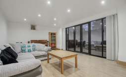 Upstairs, a mezzanine library/study overlooks the main living area, creating a wonderful space for work, reading or quiet relaxation. Two further bedrooms include the bright and airy main suite with striking feature windows and en suite, along with an additional bathroom featuring an oversized shower.