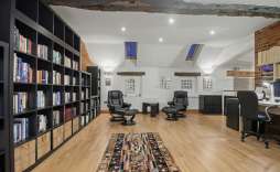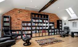 Mezzanine Library/Study - 6.12m x 5.72m (20'1 x 18'9) - This stunning library/study is a truly inspiring space, filled with natural light from three Velux roof windows. A balcony overlooks the opposite landing and offers a striking view down into the drawing room, creating a sense of openness and connection while providing the perfect atmosphere for reading, working, or relaxing in style.