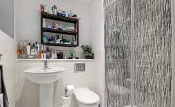 Ensuite - shower cubicle. wash hand basin and wc, splashbacks and radiator.
