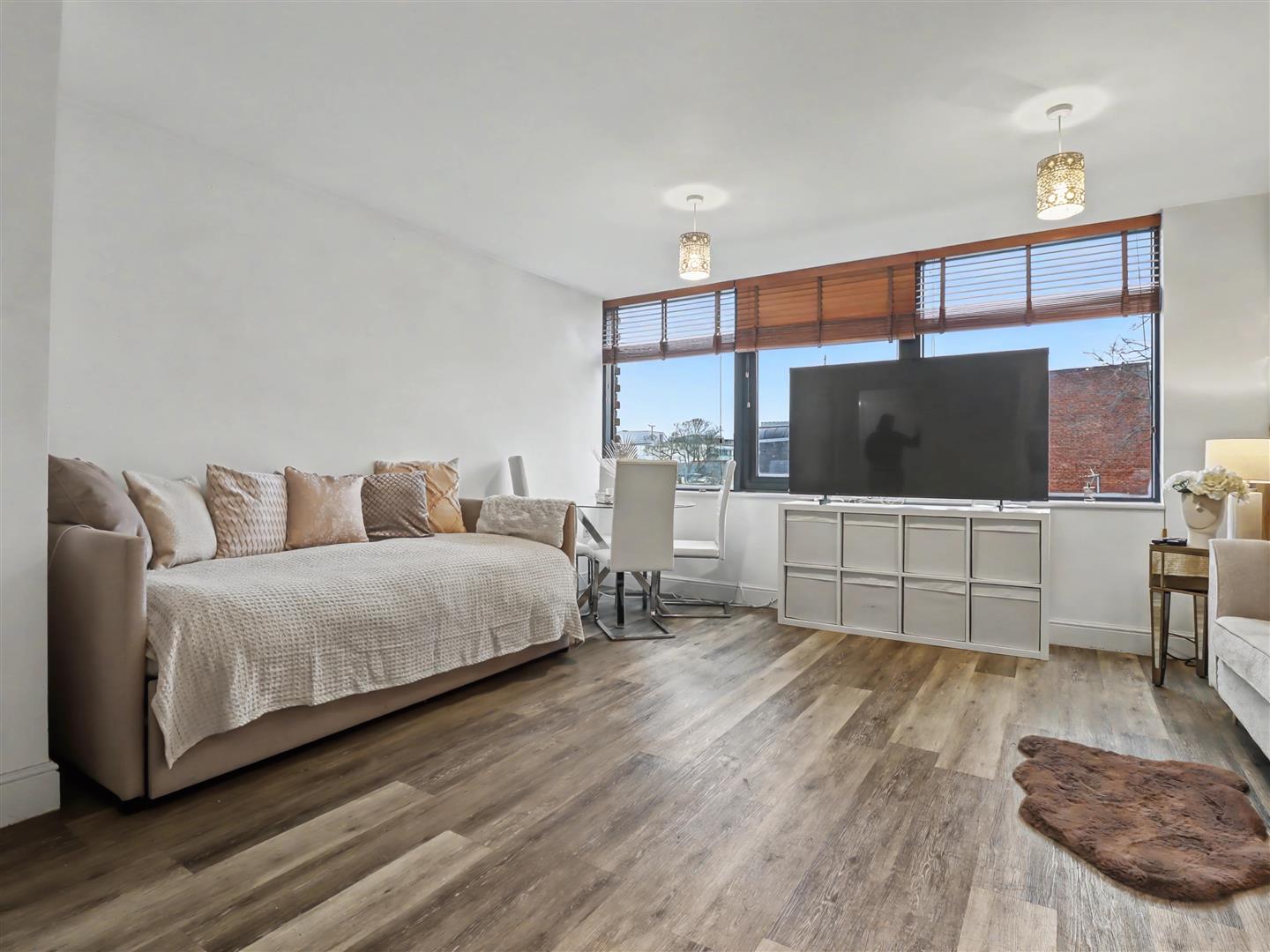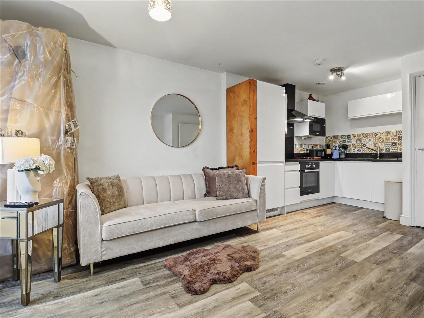 Welcome to Grosvenor House in the heart of Norwich, This apartment is a modern one bedroom apartment that offers a delightful blend of comfort and style. third-floor residence boasts a thoughtfully designed living space that seamlessly integrates a living area, dining area, and a contemporary kitchen equipped with integrated appliances with striking feature tiles to wall.