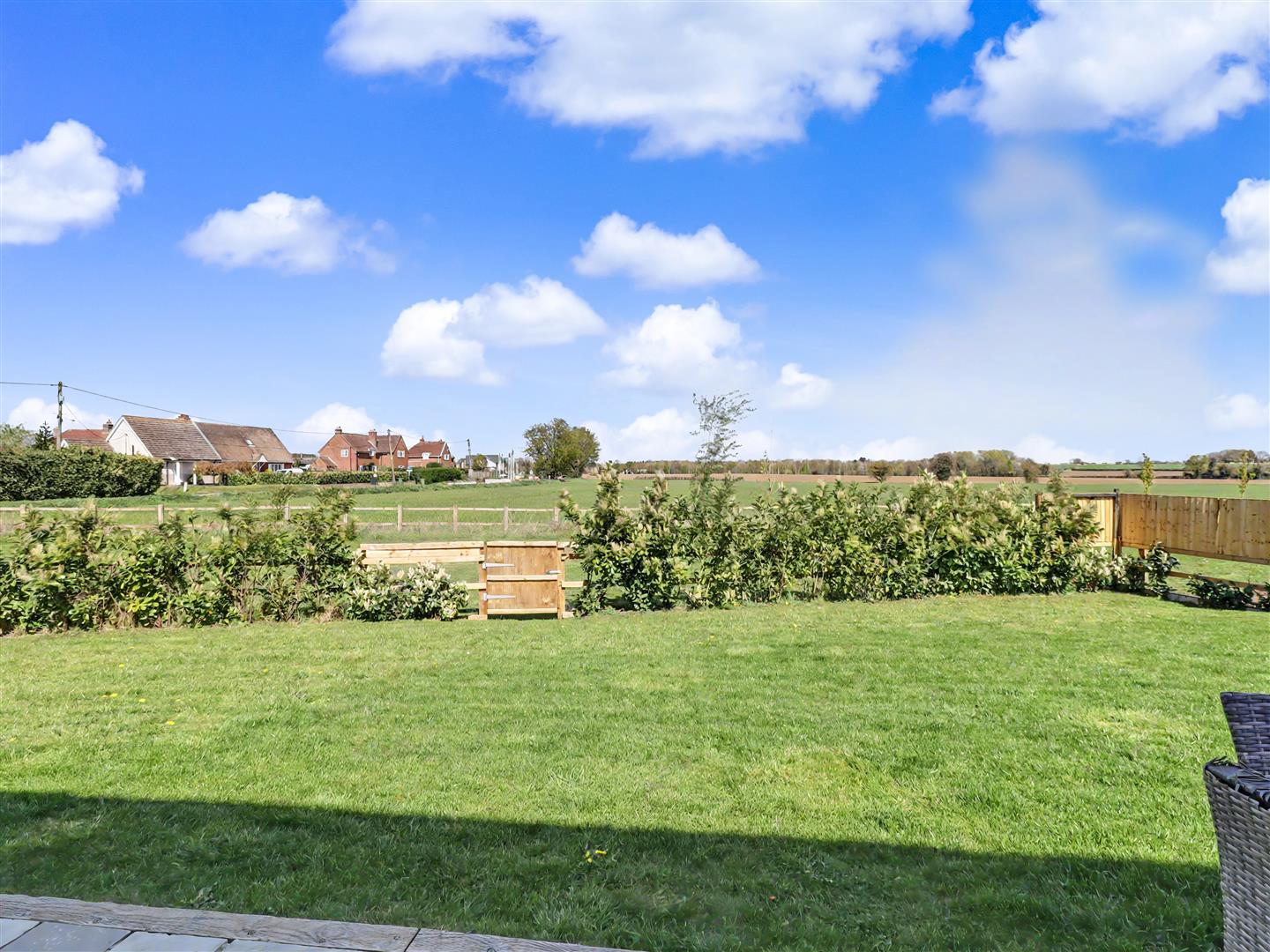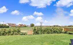 Outside - Shared gravel driveway leading to the garage, side parking and frontage. Gated to the rear garden. Rear garden has been landscaped with raised Indian sandstone patio, sleeper edged with sleeper edged border. Laurel hedge to the bottom border with lawn inset. Fantastic views over the open farmland. Garage is attached to the neighbouring garage. Up and over door and is a single.