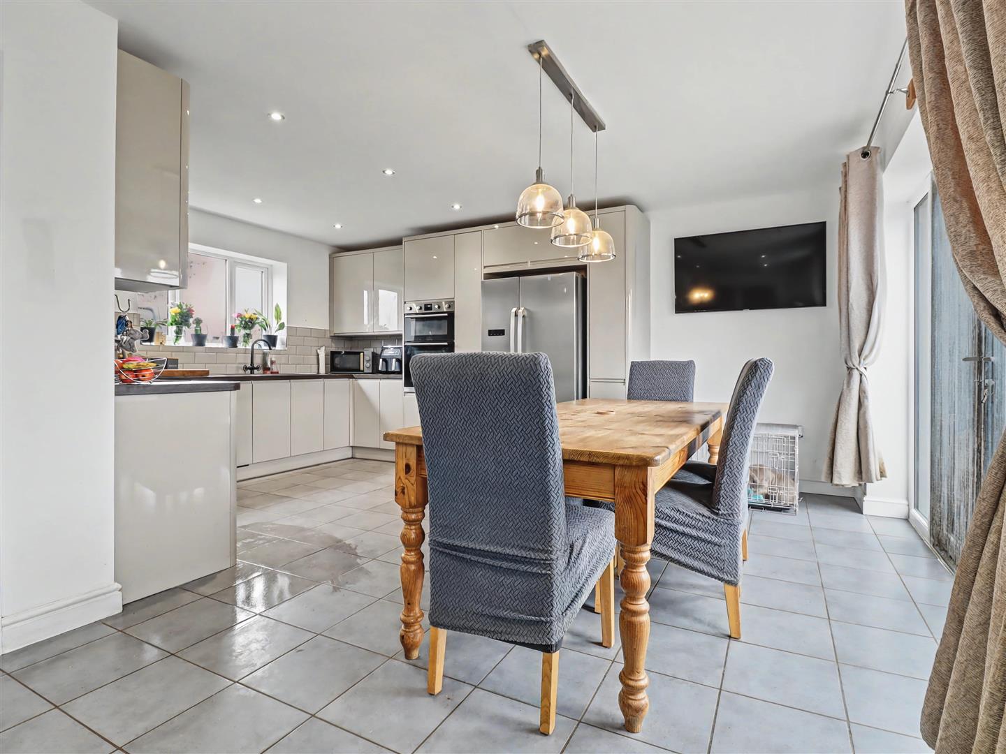 Kitchen/Dining Room - 6.71m max x 5.18m max (22'0 max x 17'0 max) - Sealed unit double glazed doors to the rear along with a window overlooking the rear garden. Sealed unit double glazed window to the front. Range of base and eye level units with integrated appliances to include, oven, hob cooker hood, dishwasher and space for fridge/freezer. Splash backs and tiled floor.