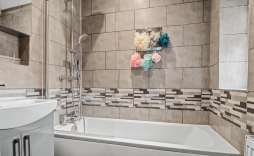 Family Bathroom - Sealed unit double glazed window to the rear, bath with screen and shower wash hand basin. Tiled splash backs.