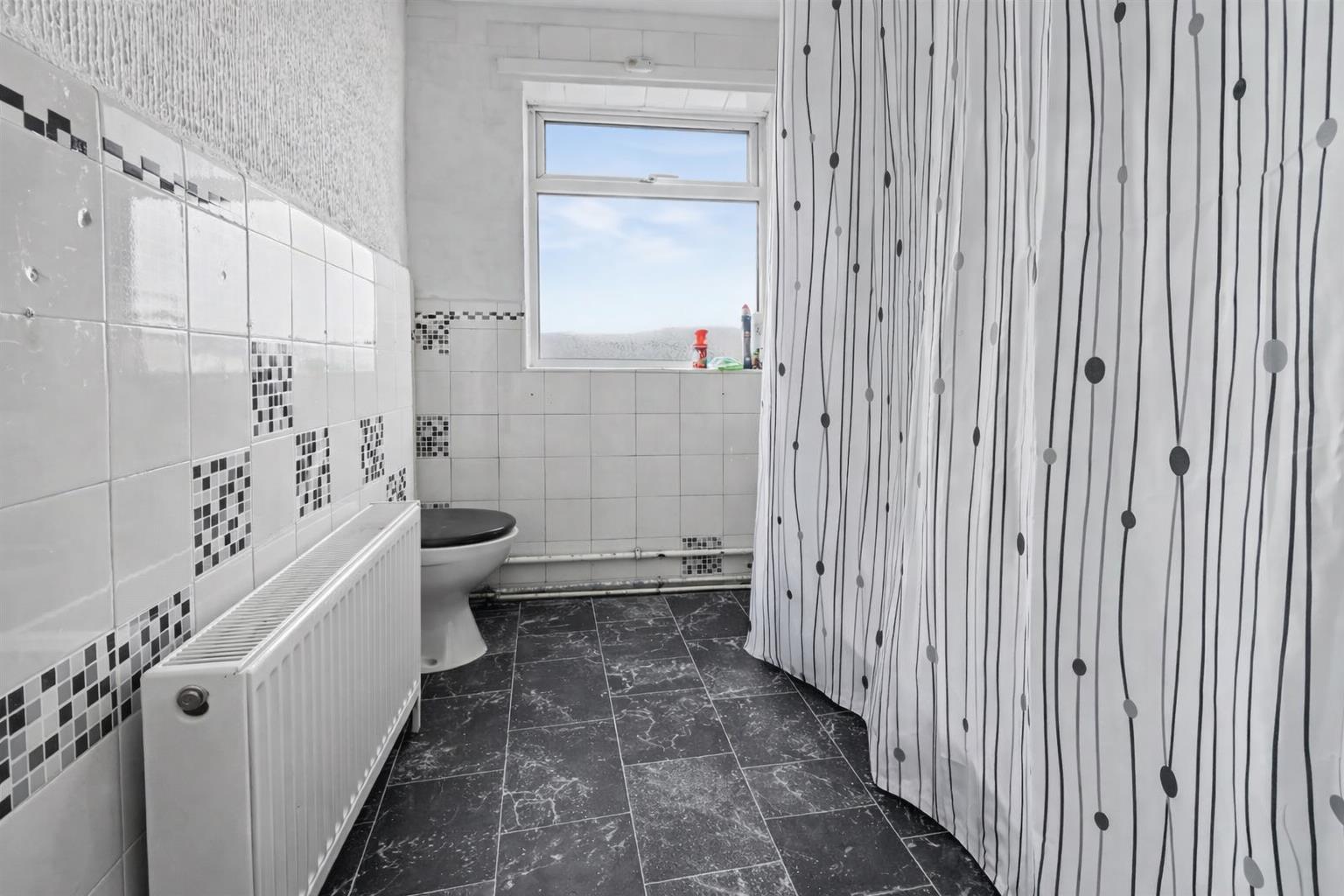 Bathroom - Panel bath with shower, pedistal wash hand basin, wc and half tiled walls. New Lino.
