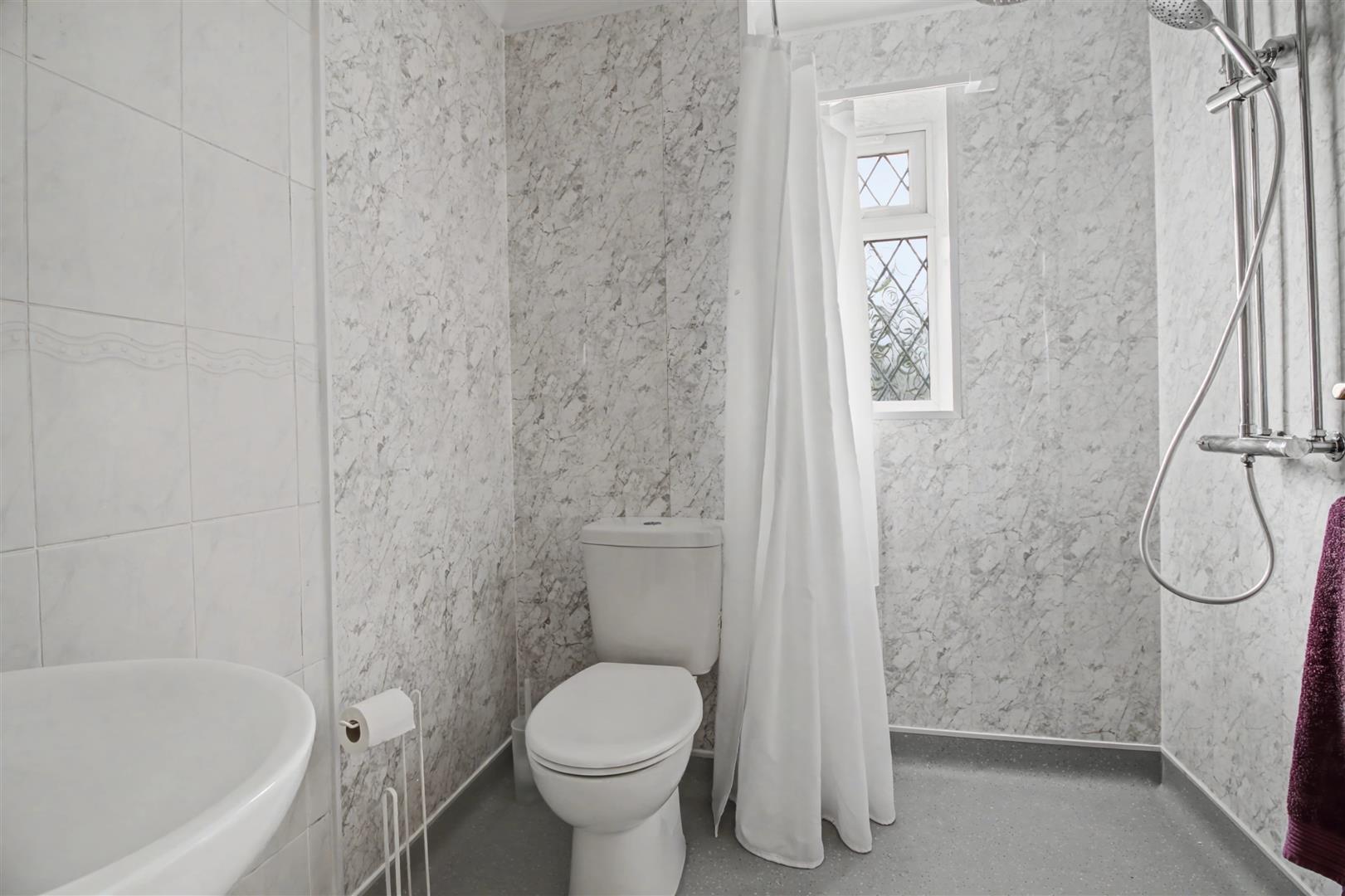 Shower Room - Low level W/C, shower, pedestal wash basin, radiator, double glazed window to side.