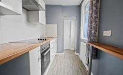 The property also offers off road parking outside the front. The living space offers light and space and is decorated neutrally. The kitchen again has been finished well with neutral cupboards and wood effect worktops with an electric hob, oven and extractor hood. Through the kitchen is a small space which houses the gas combo boiler before you get to the bathroom.